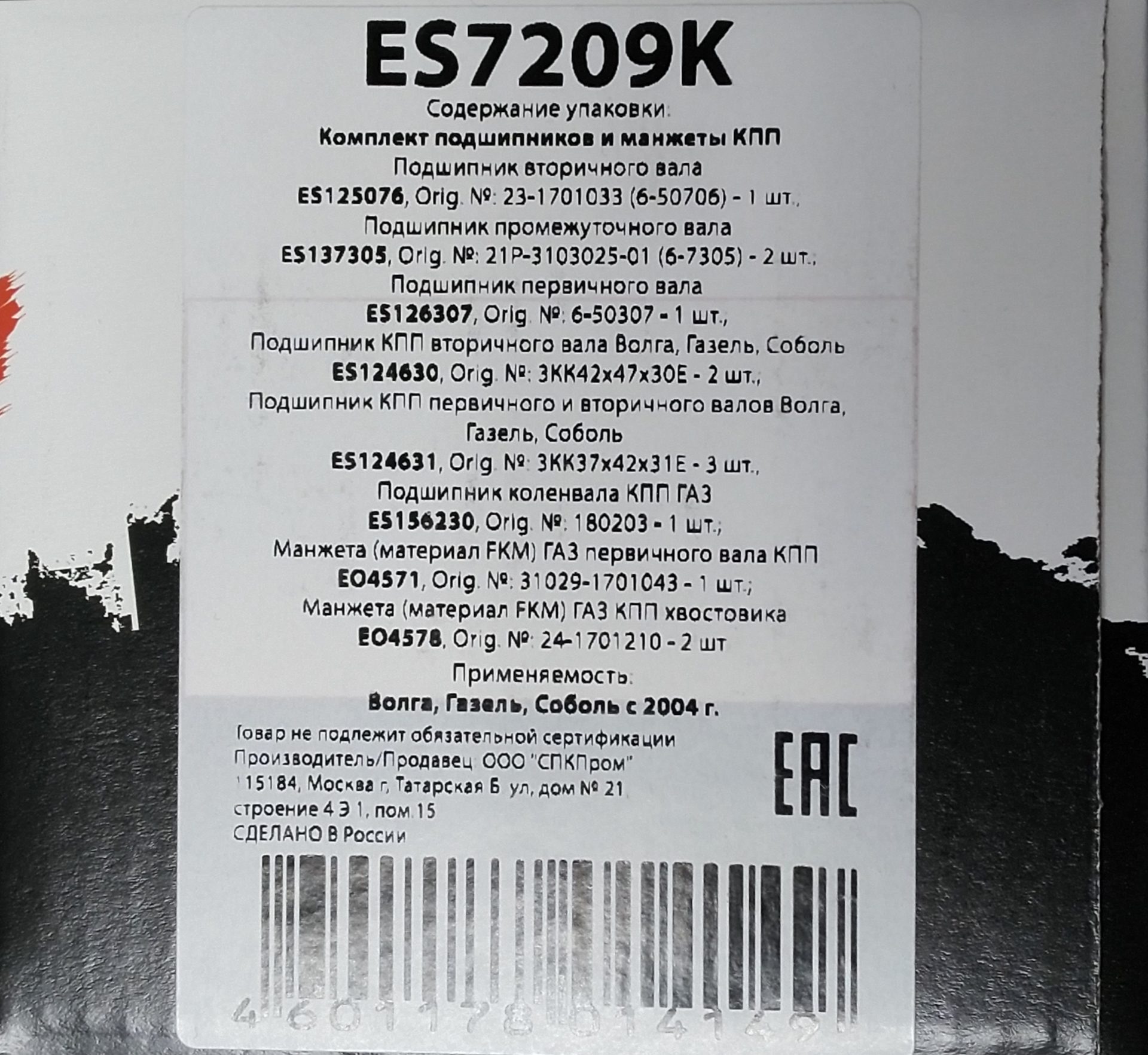 РК КПП Газель 3302 ESPRA подшипники, сальники + игольчатые