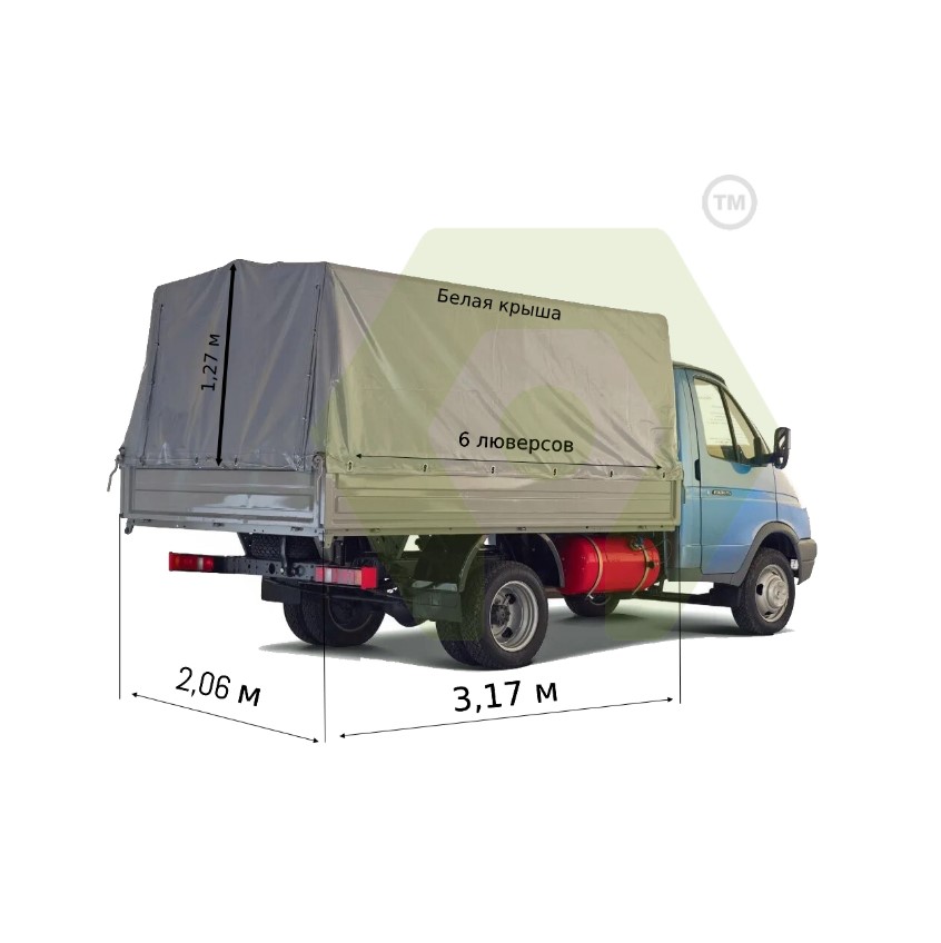 Тент Газель Бизнес 6 петель цвет Серый борт 3.17 метра 020162 бел кр., 012575